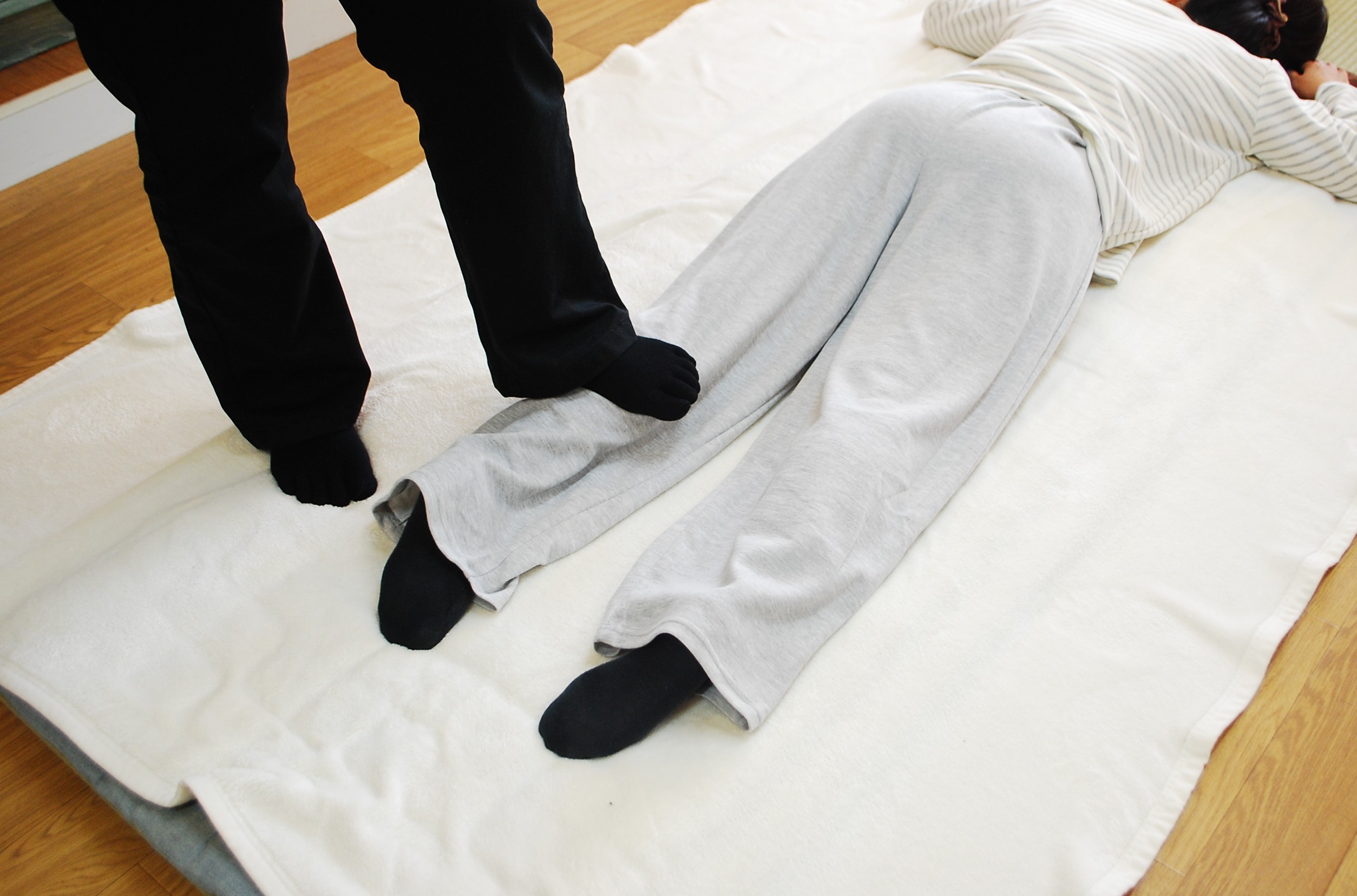 足で踏みながらもみほぐし体に溜まった乳酸老廃物を流します。